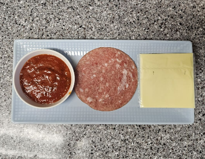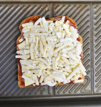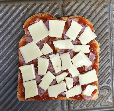재료 : 식빵 1장, 토마토스파게티소스 또는 케첩 1.5큰술, 슬라이스치즈 1장, 샌드위치용 햄 1장(없으면 일반 햄), 모차렐라치즈 조금, 냉장고에 남아있는 자투리 야채가 있다면 사용하세요. 우리 집 둘째는 야채 싫어하는 녀석이라 아침은 입맛에 맞춰 햄만 넣어준답니다.