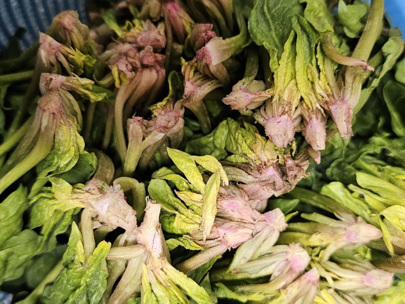 노랗게 시든 잎을 제거하고 흐르는 물에 살짝 씻어 흙과 이물질 제거합니다.