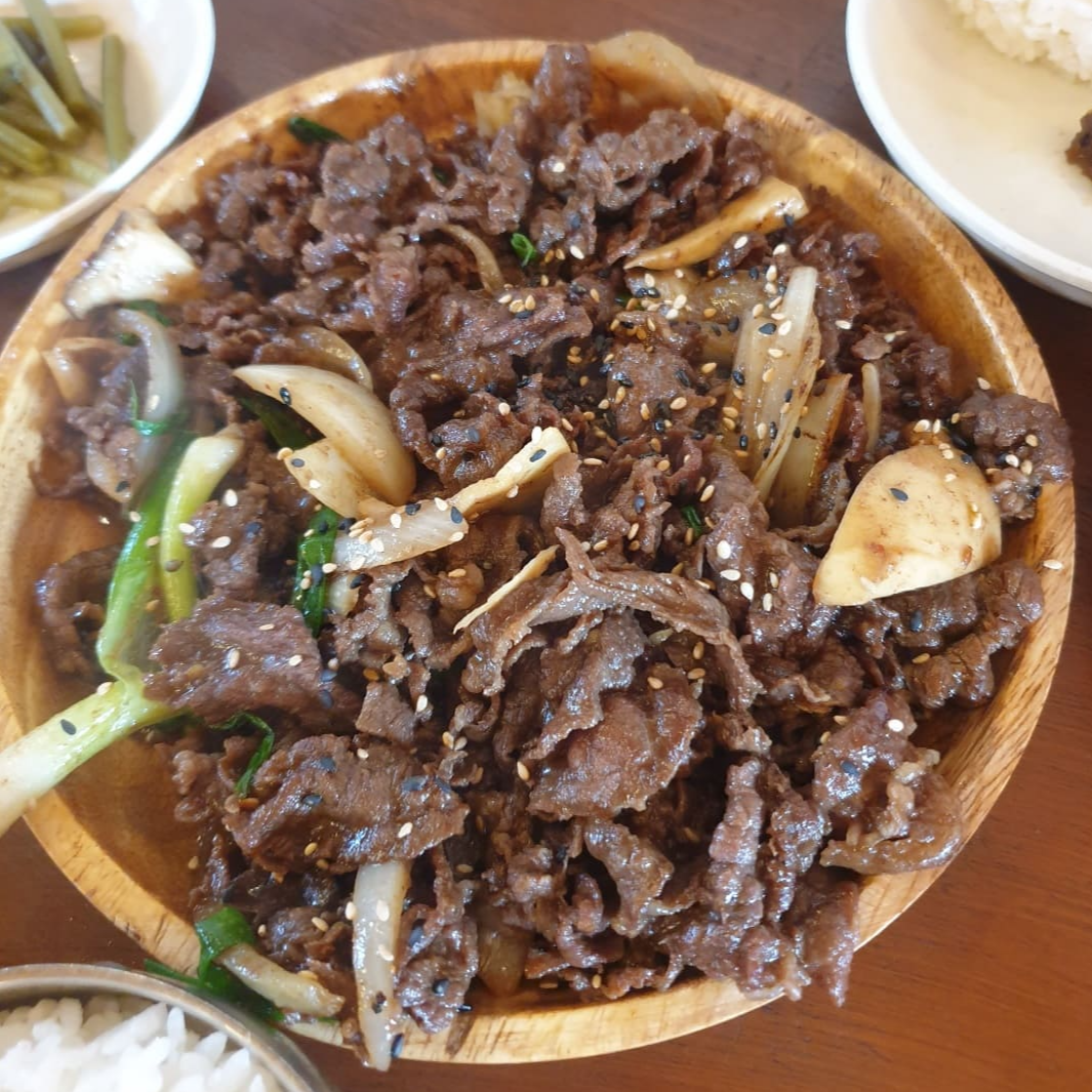 처음엔 꼬막비빔밥 맛집으로 찾아갔는데 꼬막을 못 먹는 둘째를 위해 시킨 불고기였는데 불고기도 맛집이더라고요.