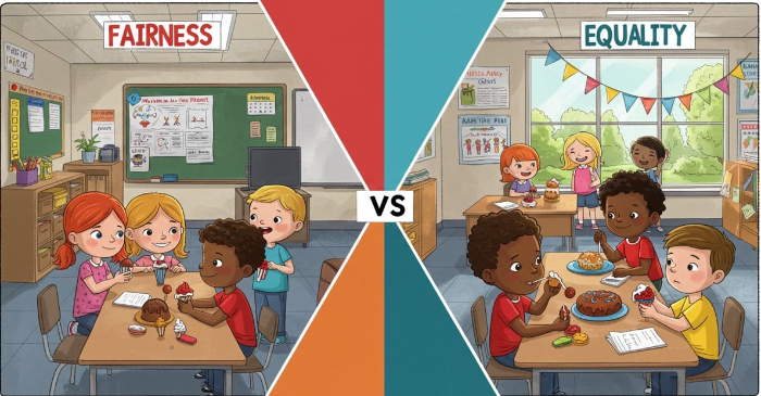 공정은 단순한 ‘동일함’이 아니라 ‘배려의 마음’에서 출발해요. 어떤 친구는 조용한 곳에서 공부해야 집중이 잘 되고, 어떤 친구는 손을 더 자주 들지도 몰라요.