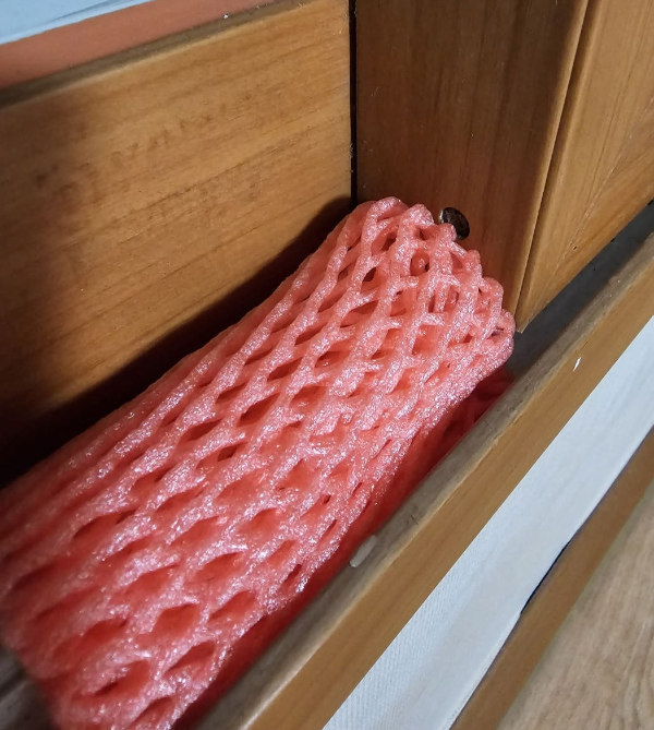 창문으로 솔솔 찬바람 들어오는거 아시죠? 바람이 많이 부는 추운 날에는 창문틀과 물구멍으로 바람이 꽤 많이 들어오는데요 여기에 과일망을 끼워놓아 보세요. 냉기를 잡아주어 실내온도를 유지하는데 도움이 됩니다.
