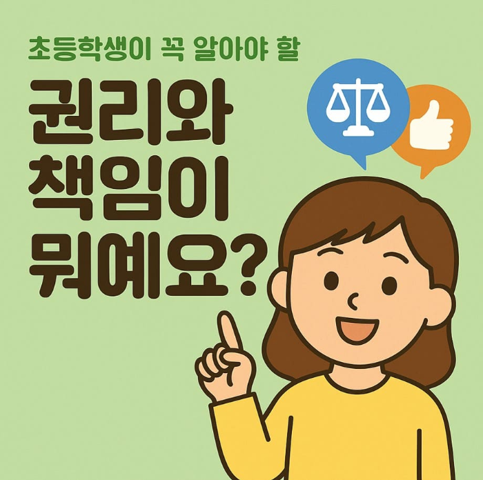 우리 사회는 ‘권리와 책임’이 함께 있을 때 더 건강해져요. 지금 내가 하는 선택이 권리만이 아니라 책임까지 생각한 행동인지 돌아보는 연습을 해볼까요?