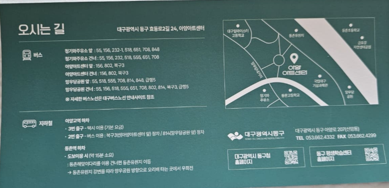 - 장소 : 아양아트센터 아양홀(대구 동구 효동로 2길 24)