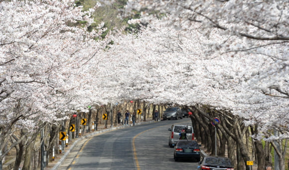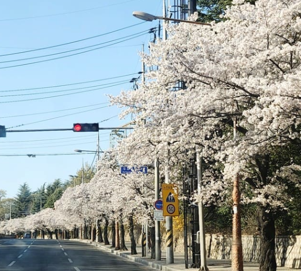 이월드 내에도 벚꽃 명소이지만 이월드로 향하는 길목 모두가 벚꽃나무가 있어 3월 말 경이 되면 만개한 벚꽃을 볼 수 있습니다.