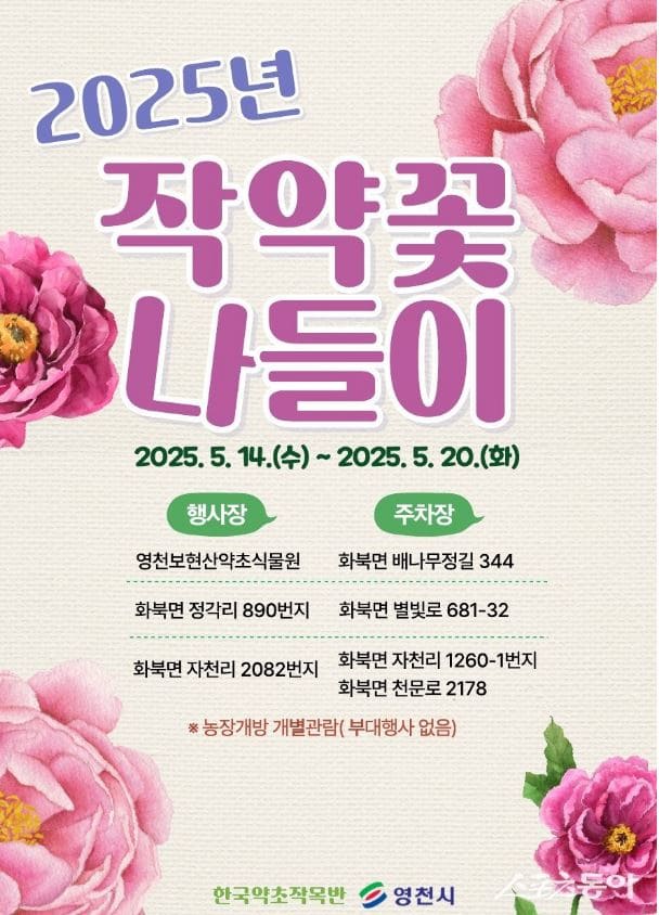 영천은 예로부터 약초의 고장으로 유명하며, 매년 5월에는 '영천 작약꽃축제'가 열립니다. 보현산약초식물원을 비롯하여 화북면 정각리, 화남면 삼창리 등에서 분산 개최되어 다양한 풍경을 즐길 수 있습니다. 특히 보현산약초식물원은 천문대로 가는 길목에 위치해 드라이브 코스로도 안성맞춤입니다.