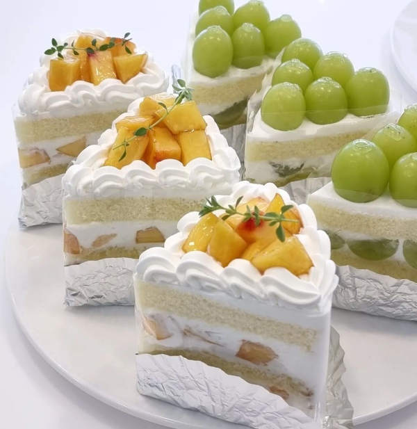 지금부터 봄에는 딸기 케이크가 여름에는 복숭아요구르트 생크림케이크와 샤인머스캣 케이크 그리고 겨울에는 귤 생크림케이크가 아주 맛있습니다.