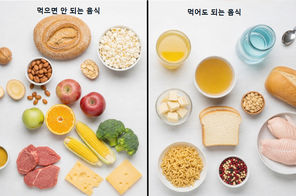 👉 검사 하루 전은 대부분 맑은 유동식만 허용되며, 검사 전날 밤부터 금식입니다.