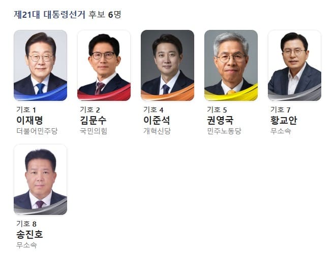 후보자들에겐 ‘기호’라는 번호가 붙어요. 이 번호는 정당의 국회의원 수에 따라 정해져요. 예를 들어, 국회에 의원이 가장 많은 정당이 기호 1번, 그다음이 2번이에요. 만약 3번 정당이 후보를 안 내면, 기호 3번은 빠지고 다음 번호로 넘어가요.