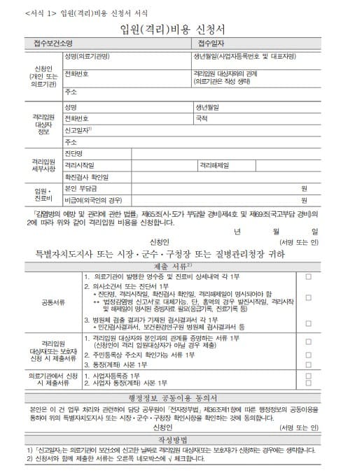 - 입원비용신청서