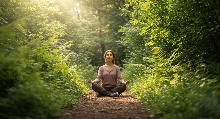 - 오감 열기 : 발이 땅에 닿는 느낌, 새소리, 바람, 나무 냄새 등 주변 감각에 집중합니다.