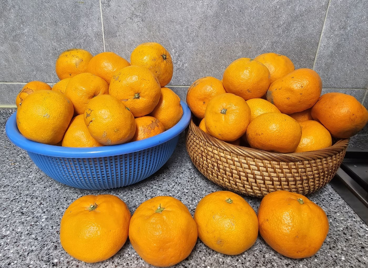 귤은 신선한 귤이라면 가장 좋겠지만 전 곪아가고 터진 녀석들을 위주로 하였습니다. 신선한 귤은 먹어도 되지만 터지거나 곪은 귤은 빨리 먹지 않으면 버려야 하기에 못 먹는 부분은 버리고 괜찮은 부분만 사용하였습니다. 귤 사이즈는 대(大) 사이즈를