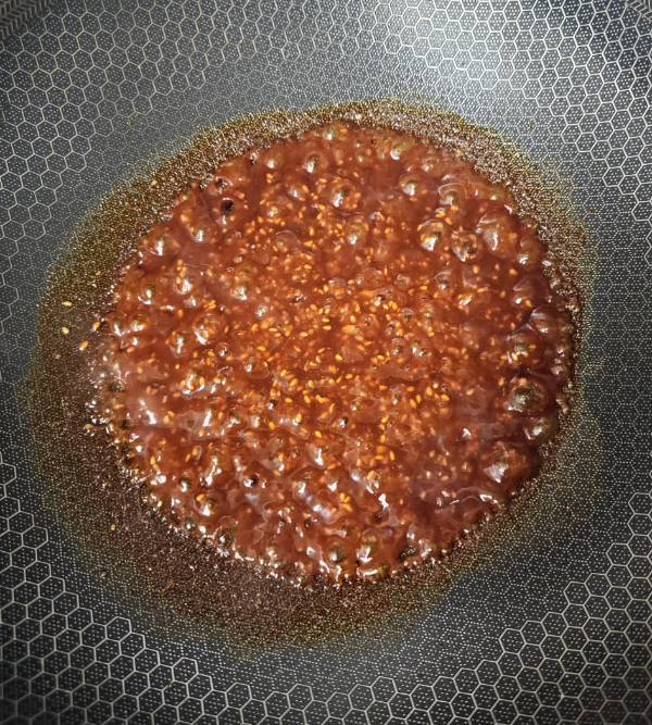3. 이제 프라이팬에 양념을 넣고 끓여주세요.