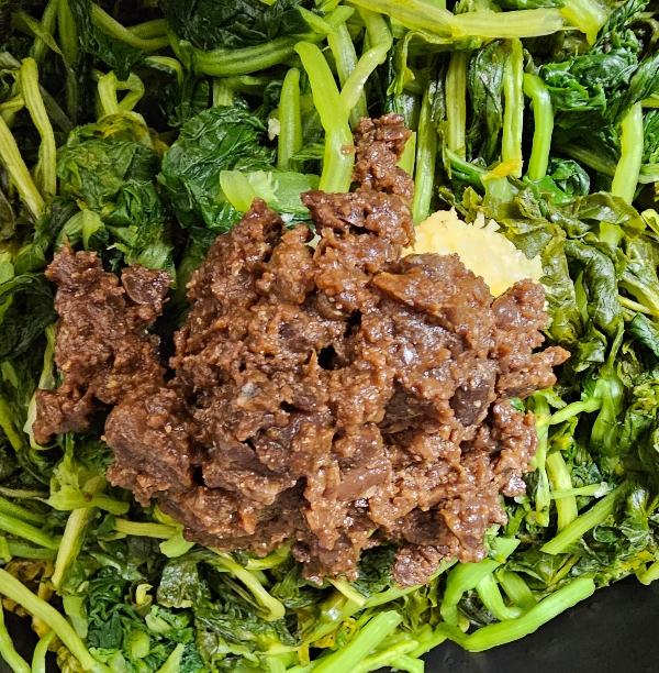 그리고 된장과 마늘로 양념하여 버물입니다.