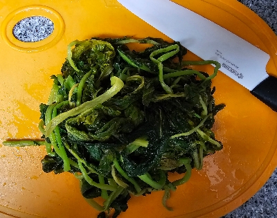 말리지 않은 생무청을 삶는 방법은 끓는 물에 소금을 1큰술 정도 넣고 생무청을 10~15분간 삶아줍니다.