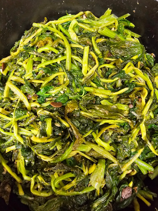 살짝 데쳐도 되지만 그렇게 하면 질긴 껍질부분이 잘 벗겨지지 않기 때문에 무청이 부들부들해질 때까지 삶아줍니다.