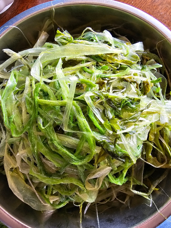 껍질을 제거한 시래기는 채반에 받쳐 남은 물기를 제거합니다.