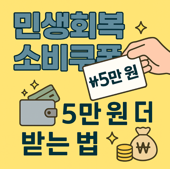 2025년 민생회복 소비쿠폰을 전액 사용하면, 카드사 공동 이벤트로 최대 5만 원 추가 쿠폰을 받을 수 있을 수 있는 이벤트입니다.