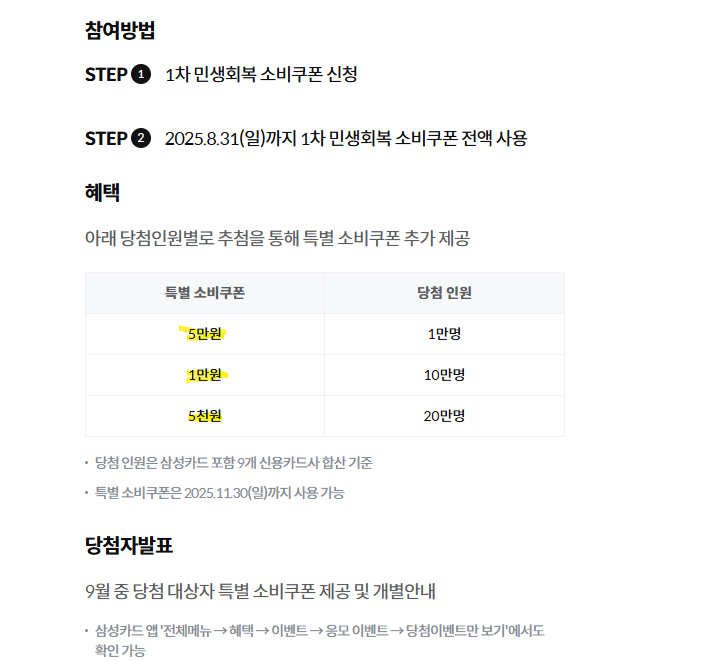 - 받은 1차 소비쿠폰이 자동으로 응모에 포함되니 걱정 없이 사용해도 됩니다
