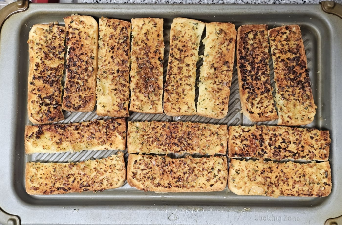 구운 마늘빵은 완전히 식힌 후, 밀폐용기에 담아 냉장 보관하실 수 있어요. 3~4일 이내에 드시는 게 좋고요 혹시나 너무 많이 만들어서 3~4일 내로 못 드신다면 냉동 보관도 가능해요. 지퍼백에 넣고 공기를 뺀 뒤 냉동하면 2주까지 OK!