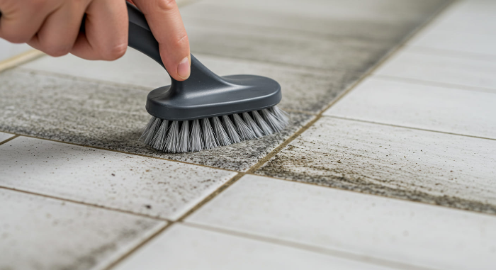 - 타일 줄눈에 베이킹소다 + 칫솔로 문지르기 → 곰팡이 제거