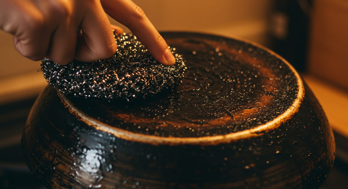 - 냄비 바닥 탄 자국엔 베이킹소다 + 물 반죽 → 20분 방치 후 문지르기