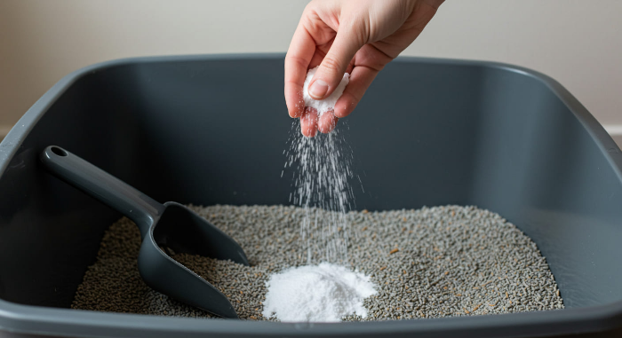 - 고양이 화장실 탈취제: 모래에 섞어주기