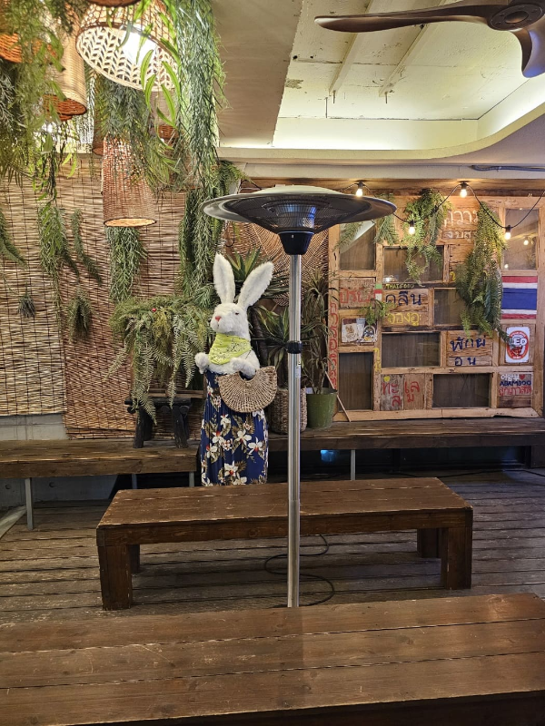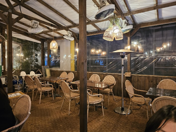 입구 대기존에 있는 토끼도 겨울이라 추운 듯 목에 스카프를 두르고 있네요. 대기하는 손님들이 많은 듯 스탠드 히터가 준비되어 있었고 우리는 약간 늦은 시간 (저녁 7시 반 도착)이라 그런지 대기는 없었지만 야외테라스 자리뿐이라 그래도 먹기로 했습니다. 날이 조금 춥지만 분위기는 좋네요.