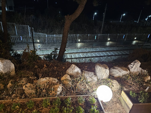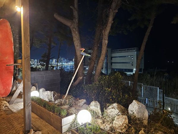한쪽엔 바다가 보이는 곳이네요. 어두워바로 앞에도 바다가 보이지만 깜깜해서 보이지 않네요. 바로 아래쪽에는 기찻길과 산책로가 있어 낮에 다시 오거나 날씨가 따뜻할 때 오면 참 좋겠다는 생각이 듭니다.