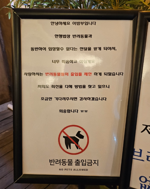 어밤부는 얼마 전까지 야외 테라스자리는 반려동물을 데리고 올 수 있었는데 이제는 안 된다고 되어있네요. 혹시나 해서 우리 집 강쥐는 안 데리고 왔는데 맛있는 태국음식을 못 먹을 뻔했네요.