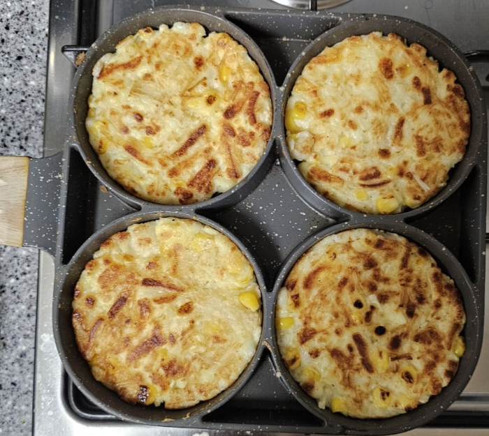 팬에 식용유를 넉넉히 두르고, 중불에서 반죽을 얇게 펼쳐 굽습니다. 한쪽 면이 노릇해지면 조심스럽게 뒤집어 반대쪽도 바삭하게 구워주세요. 치즈가 녹으면서 겉은 바삭, 속은 촉촉한 전이 완성됩니다.