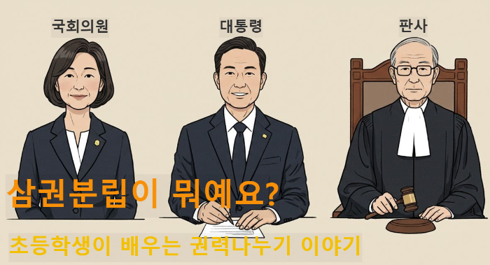 “나라 일을 나눠서 한다고요?” 맞아요! 대한민국은 한 사람이 모든 걸 결정하지 않도록 '삼권분립'이라는 멋진 시스템을 갖추고 있어요. 오늘은 이 ‘삼권분립’이 어떤 뜻이고 왜 중요한지를 쉽게 알려줄게요.