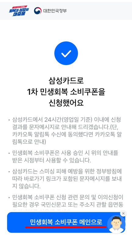 삼성카드로 민생회복 소비쿠폰 신청하기 (+미성년자 신청)