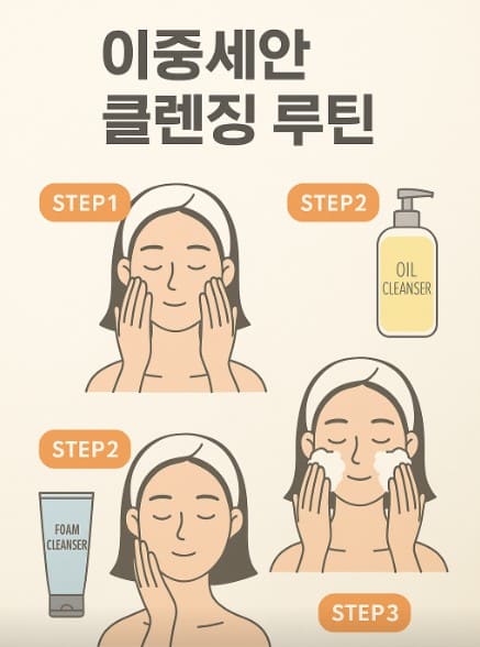 - 클렌징 오일 또는 클렌징 밤 + 폼클렌징 이중세안 추천