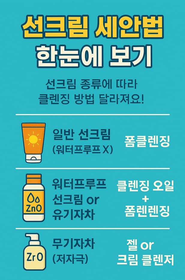 특히 워터프루프 선크림이나 밀착력이 강한 자차는 일반 세안으로는 완전히 지워지지 않는 경우가 많습니다.