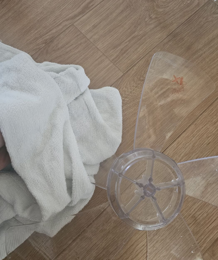 세척한 부품들은 마른 수건으로 물기를 제거한 후, 그늘진 곳에서 완전히 건조시켜주세요. 날개나 망에 물기가 남아있으면 곰팡이가 생길 수 있으니 주의가 필요해요.