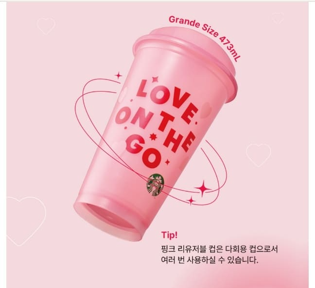 발렌타인데이의 달콤함을 스타벅스의 특별한 핑크 리유저블 컵과 함께 더욱 풍성하게 즐겨보세요!