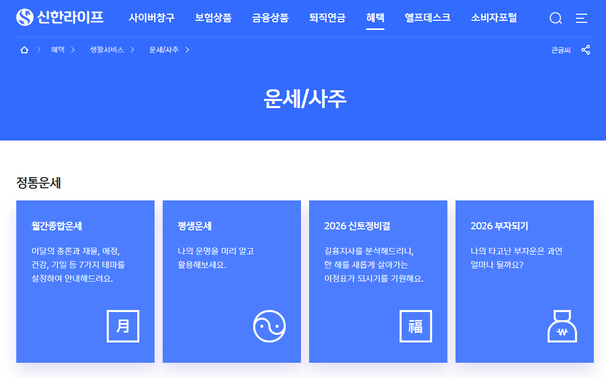 - 무료 사주(금융권에서 신년에 무료로 이용가능)