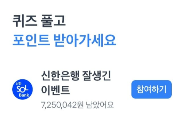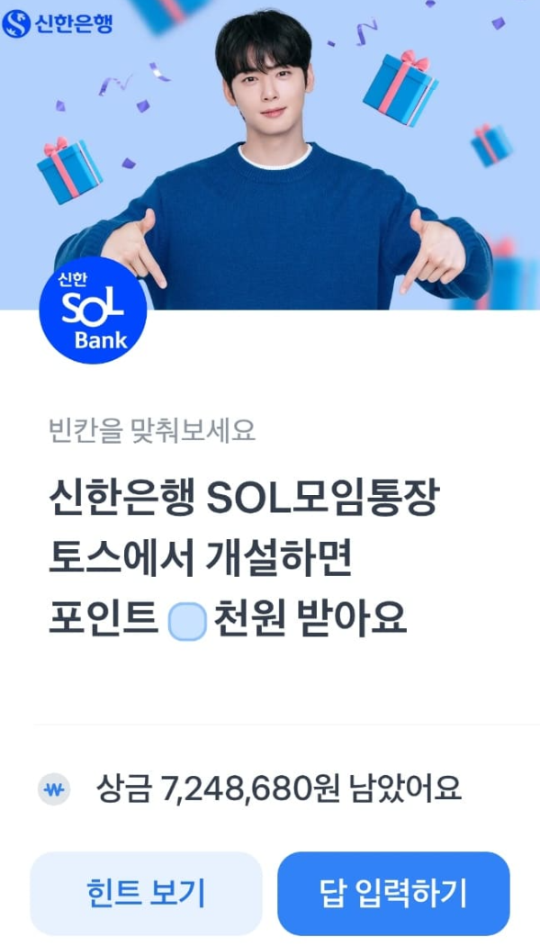 신한은행 잘생긴 이벤트 토스뱅크 행운퀴즈