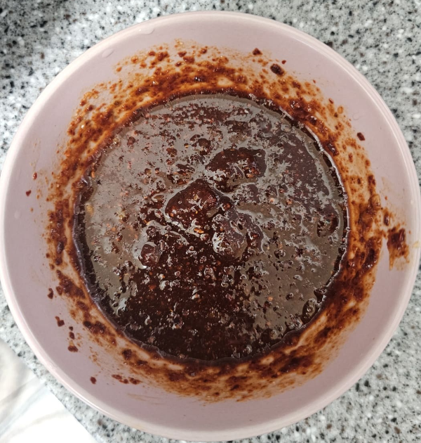 고춧가루, 마늘, 액젓, 간장, 매실액, 설탕, 물엿을 넣고 잘 섞어 양념장을 만들어 줍니다.