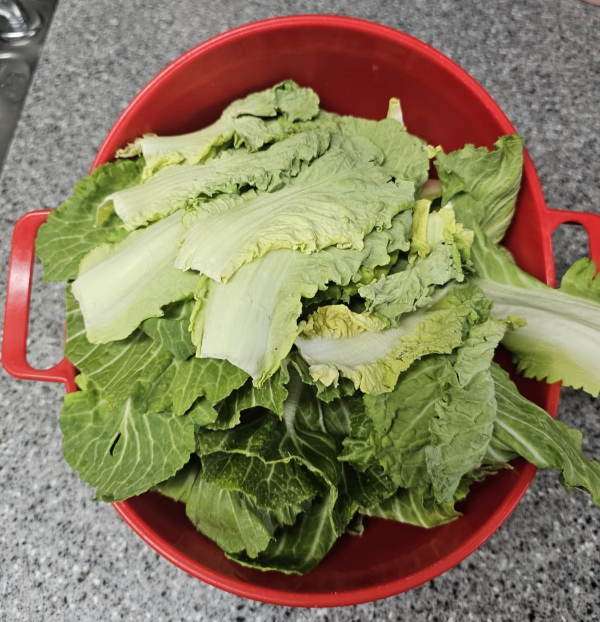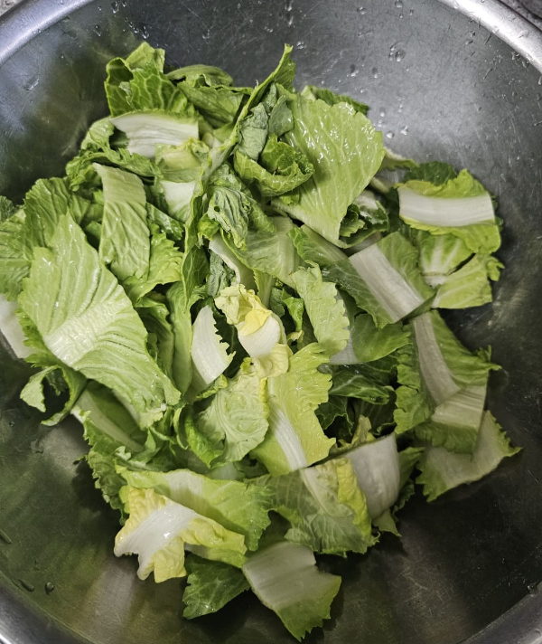 봄동은 잎들 사이사이 흙이 많으므로 깨끗이 씻어내고 물기를 빼줍니다.
