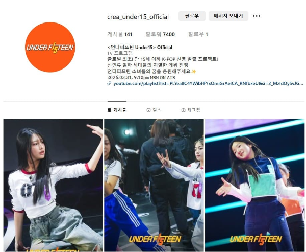 '언더피프틴'은 '미스트롯', '미스터트롯' 등을 제작한 서혜진 크레아스튜디오 대표가 기획한 프로그램으로, 오는 31일 첫 방송을 앞두고 있습니다. 참가자들은 2009년부터 2016년 사이에 태어난 소녀들로 구성되어 있으며, 가장 어린 참가자는 만 8세의 어린이입니다. 글로벌 최초로 만 15세 이해의 K팝 신동 발굴 프로젝트의 콘셉트로 구성되었습니다. 실제로 아이돌 연습생이 나이는 점점 더 어려지고 많은 아이들이 아이돌을 장래희망으로 꼽고 있는 요즘의 니즈를 맞추었다고 볼 수 있겠네요.