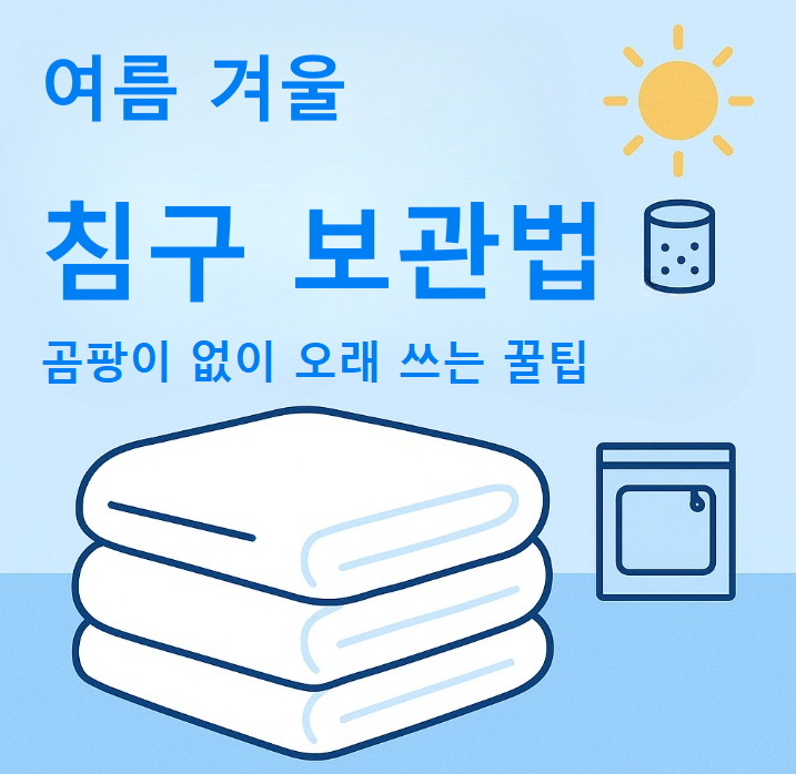 여름·겨울 침구 보관의 핵심은 세탁 → 완전 건조 → 올바른 보관 → 보관 장소 관리입니다.