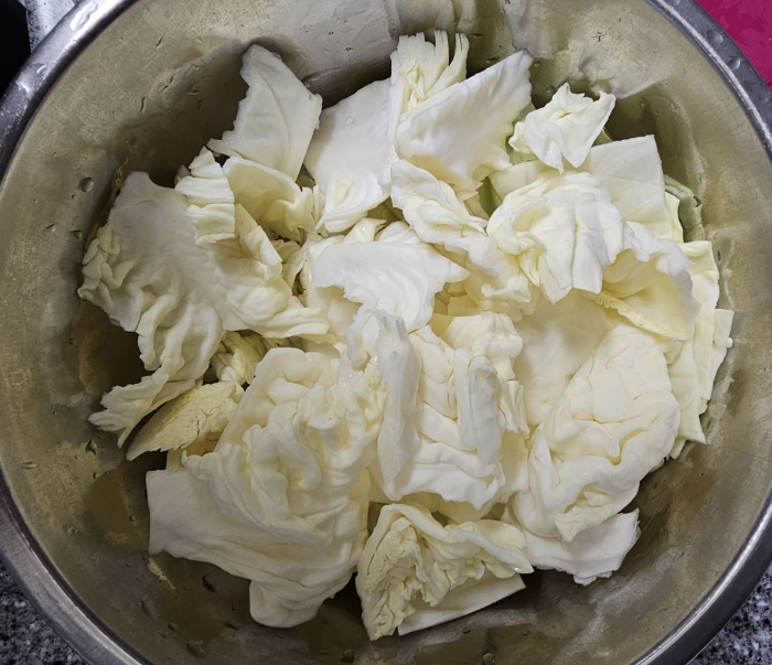 통에 담아서 해도 되지만 집에 큰 통은 플라스틱 밖에 없어서 뜨거운 물을 부우려니 환경호르몬이 걱정되어 저는 냄비에 야채를 넣어서 합니다.