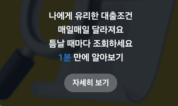 문제 & 정답 : 나에게 유리한 대출조건 매일매일 달라져요 틈날 때마다 조회하세요 1분 만에 알아보기