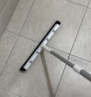 물기제거를 위해 스퀴지를 사용하면 편해요. 스퀴지가 없다면 욕실 청소용 수건을 하나 비치해 주시는 것도 좋아요. 단, 욕실청소용 수건은 사용 후 바로 건조하지 않고 방치하게 되면 오히려 곰팡이나 악취를 일으킬 수 있으니 주의하세요.
