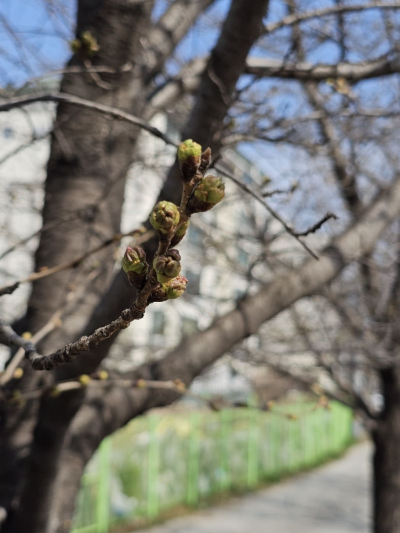 대구에는 벚꽃 개화시기가 보통 3월 말경이면 활짝 개화가 됩니다. 제가 살고 있는 곳도 햇빛이 좀 잘 드는 곳은 일찍 펴고 그늘진 곳은 조금 늦게 피더라고요. 벚꽃이 꽃봉오리를 피울 때부터 찍어봤습니다.