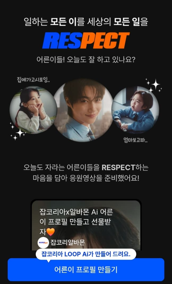 잡코리아가 어린이가 어른이 되어가는 모습을 CF로 광고중이데 참신한 광고 같더라구요.