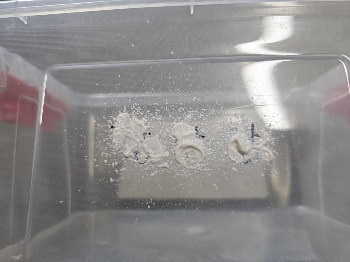 - 손가락으로 살살 문지른 후 물티슈로 닦아낸다.