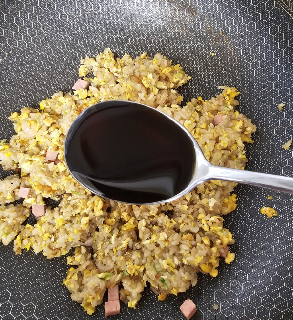 스팸이 들어가기 때문에 간은 강하지 않게 하는 게 좋아요. 전 간장계란밥 전용 간장을 넣어주었습니다. 이 간장이 감칠맛도 좋고 짜지 않아서 좋더라고요. 기호에 따라 간은 맞추시면 됩니다. 아이들과 함께 먹고 김치와 단무지 반찬이 있어서 전 조금 싱겁게 하는 편이에요. 그래서 1큰술만 넣었어요. 이 정도가 색도 이쁘게 나오고 심심하니 간이 딱 좋더라고요. 일반 간장을 사용하시는 분이라면 2/3큰술 정도 넣으셔도 적당할 것 같아요.