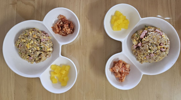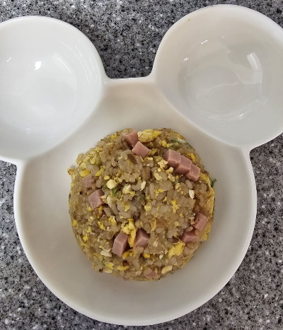 예쁘게 접시에 담아주세요. 전 이런 볶음밥류를 아이들에게 줄 때 곰돌이 모양 접시를 잘 사용하는데요 이 접시가 은근 맞춤이에요.